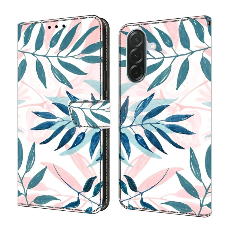 Protégez votre Samsung Galaxy A57 5G avec style grâce à cet étui portefeuille élégant orné d'un motif feuilles aquarelle. Doté d'un support pliable, de 2 emplacements pour cartes et d'une fermeture magnétique sécurisée, il allie parfaitement protection.