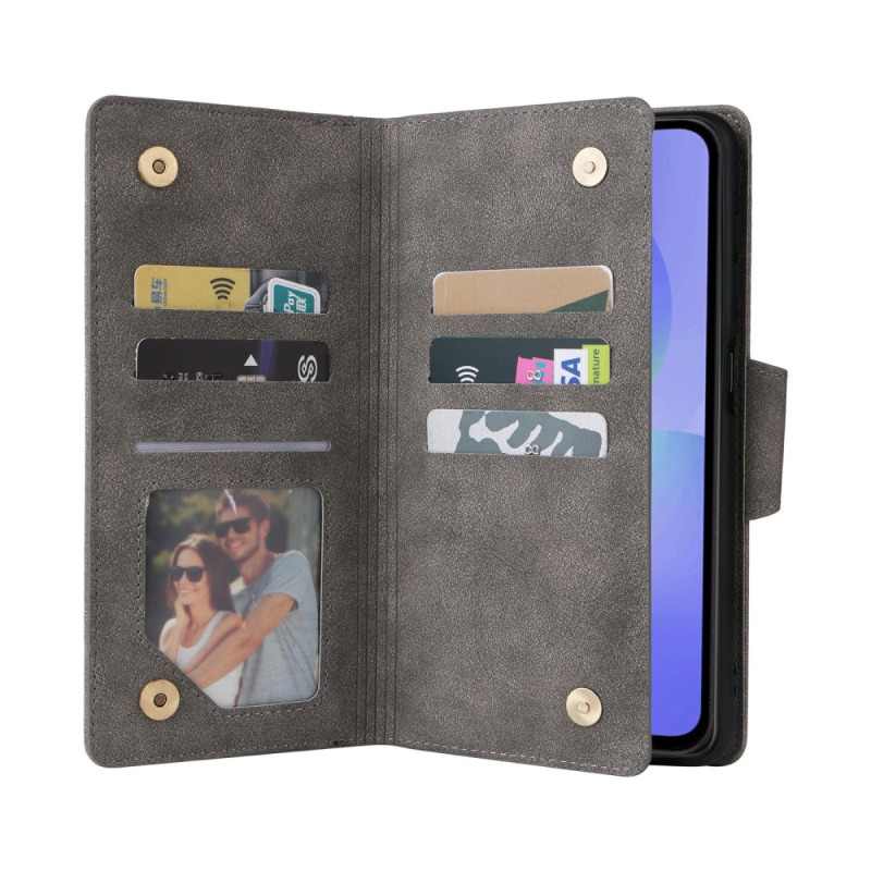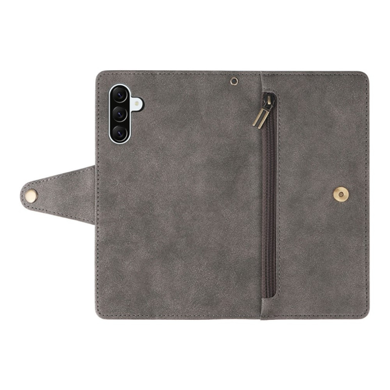 Protégez votre Samsung Galaxy A57 5G avec style grâce à cet étui portefeuille en cuir à double couche. Orné de rivets élégants, il combine protection optimale et fonctionnalité pratique avec ses compartiments pour cartes, sa poche zippée et sa dragonne.