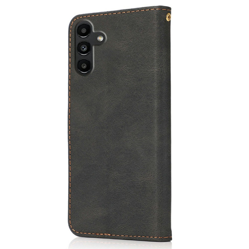 Étui portefeuille élégant pour Samsung Galaxy A57 5G en cuir PU avec design bicolore. Protection complète double couche, porte-cartes intégrés, poche pour billets, support mains libres et fermeture magnétique sécurisée. Dragonne pratique incluse.