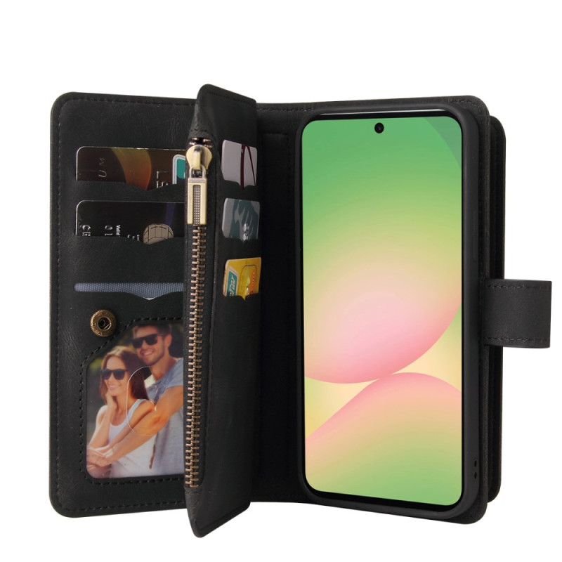 Protégez votre Samsung Galaxy A57 5G avec style grâce à cet étui portefeuille multifonction. Doté de 15 emplacements pour cartes, d'une poche zippée sécurisée et d'une dragonne détachable, il combine élégance et praticité au quotidien.