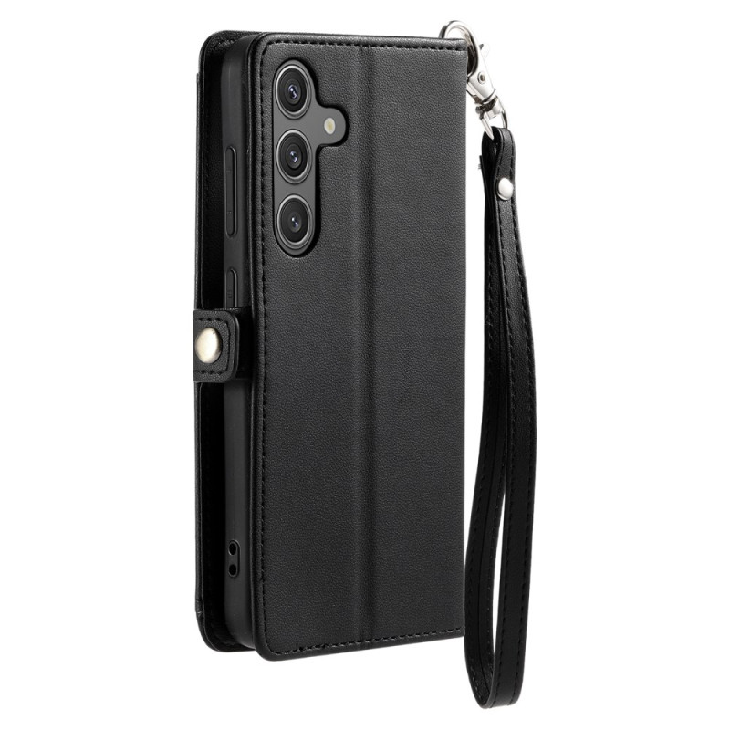 Protégez votre Samsung Galaxy A57 5G avec style grâce à cet étui portefeuille multifonction. Doté de 3 emplacements pour cartes, d'un compartiment pour billets et d'une dragonne pratique, il combine élégance et praticité au quotidien.