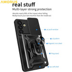 Protégez votre Samsung Galaxy A57 5G avec cette coque robuste dotée d'une protection caméra coulissante, d'un support rotatif intégré et d'une résistance aux chocs de qualité militaire. Compatible avec les supports magnétiques pour voiture.