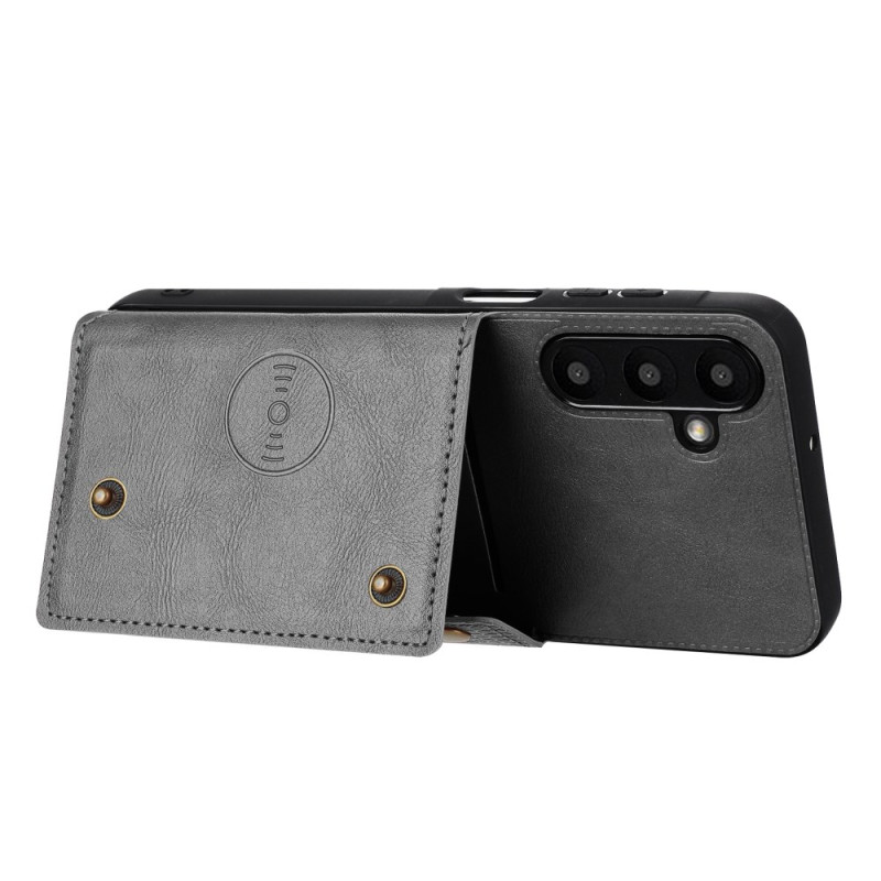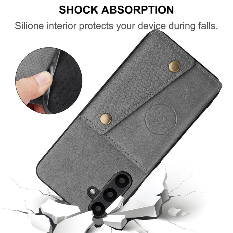 Étui multifonction alliant élégance et praticité pour votre Samsung Galaxy A57 5G. Doté de porte-cartes intégrés, d'une béquille ajustable et d'une fermeture sécurisée à double bouton-pression. Compatible avec les supports magnétiques de voiture.