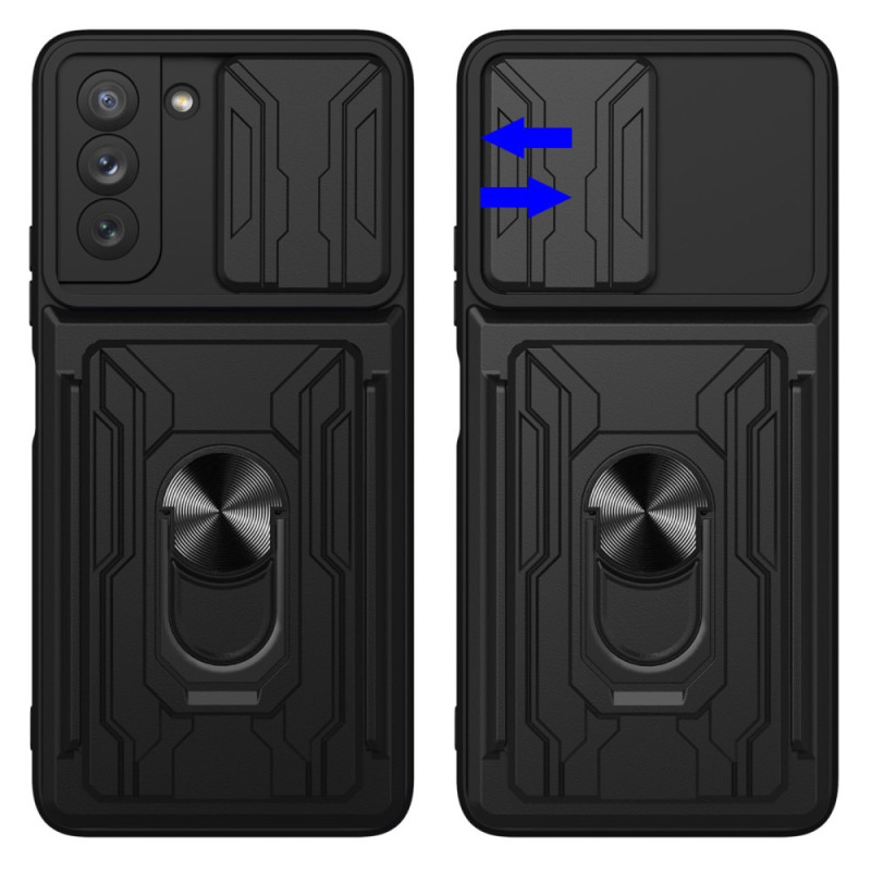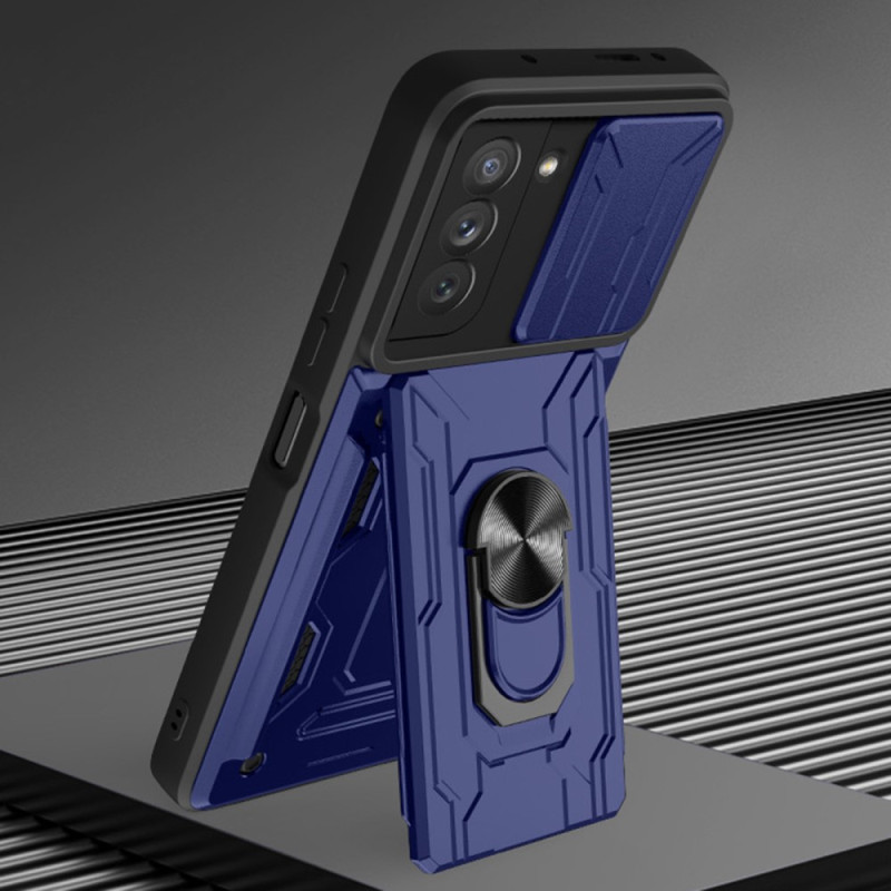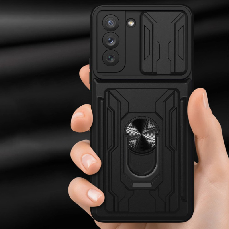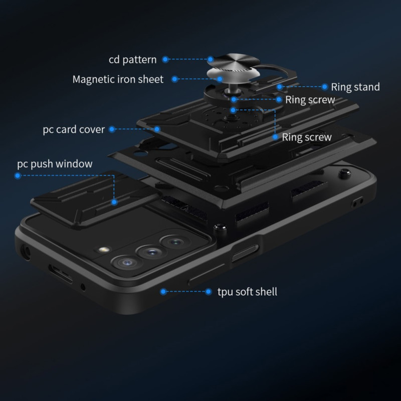 Pour votre Samsung Galaxy S21 FE, adoptez cette coque résistante et multifonctions avec son anneau-support et sa glissière de sécurité.
