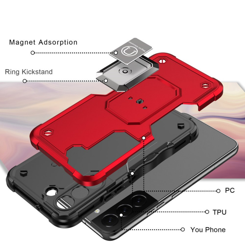 La coque hybride antidérapante, avec anneau-support, sécurise parfaitement le dos et les rebords de votre Samsung Galaxy S22 5G.