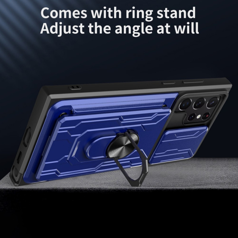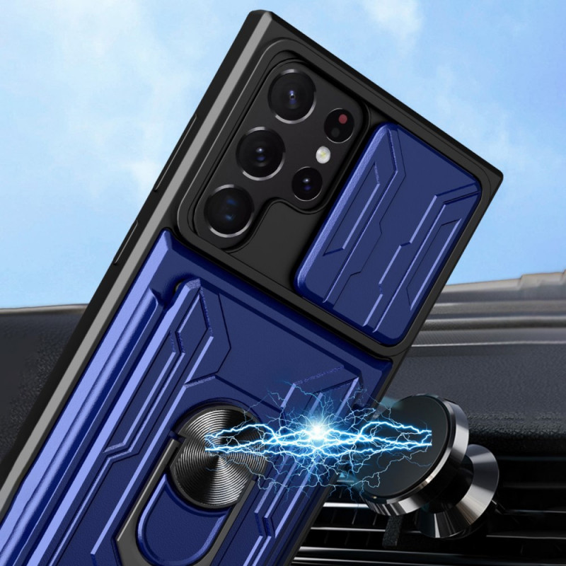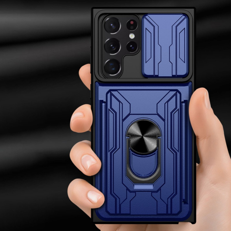 Sécurisez votre Samsung Galaxy S22 Ultra 5G avec cette super coque munie d'un anneau-support et d'un protège lentilles à glissière.