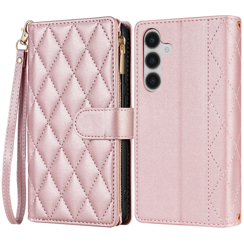 Découvrez notre étui portefeuille matelassé pour Samsung Galaxy S24 FE, conçu avec un motif de couture losange élégant.