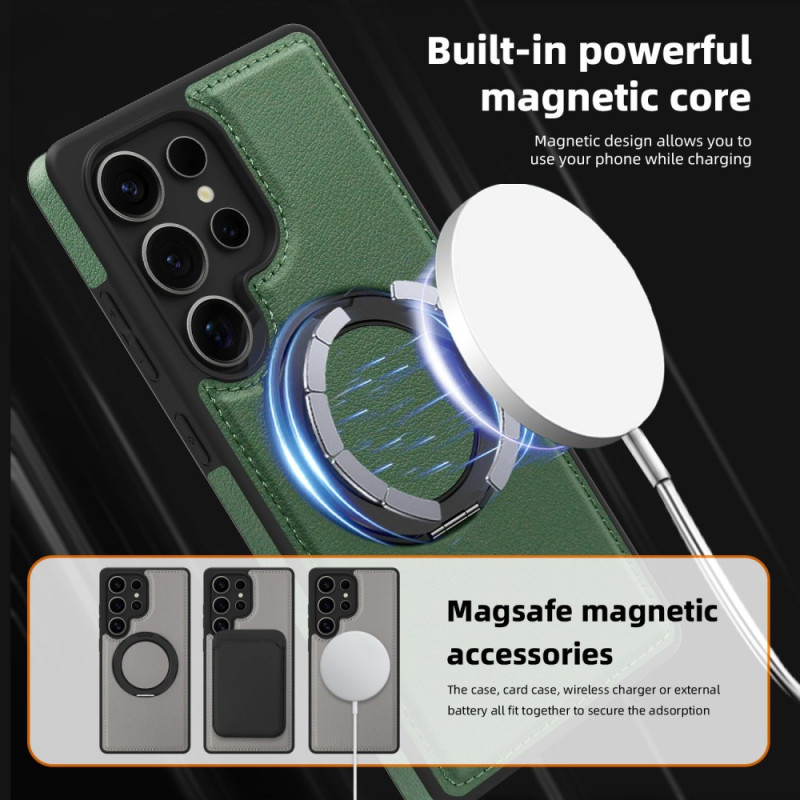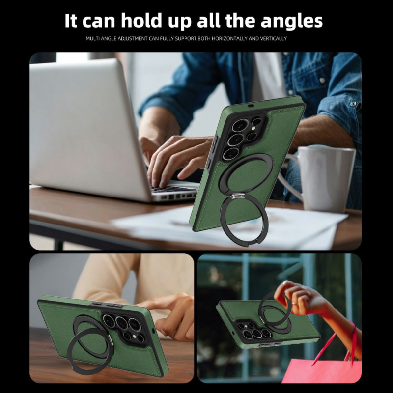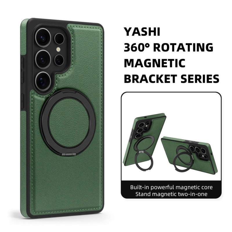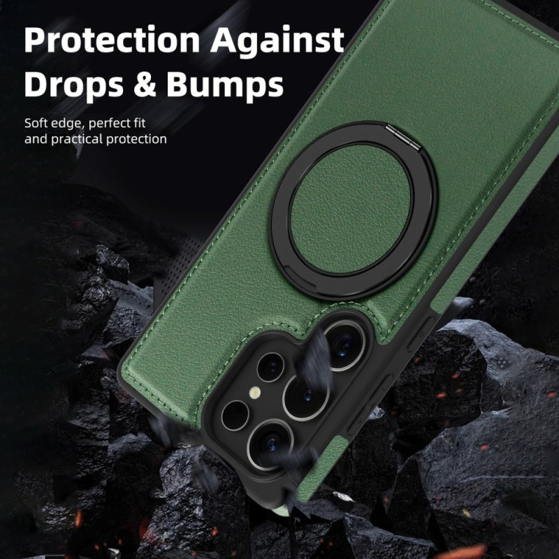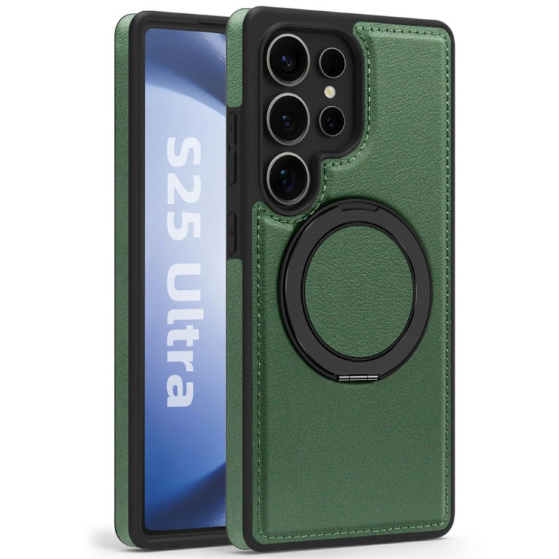 Découvrez notre coque magnétique innovante pour Samsung Galaxy S25 Ultra. Dotée d'un anneau rotatif à 360°, elle offre une protection robuste grâce à sa combinaison de TPU, PC et cuir PU.