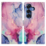 Élégant étui portefeuille à rabat avec motif marbre vert et rose pour Samsung Galaxy S26 Plus. Design tout-en-un avec 2 emplacements pour cartes, poche photo et compartiment latéral spacieux. Support intégré pour visionnage mains libres et dragonne détachable incluse.