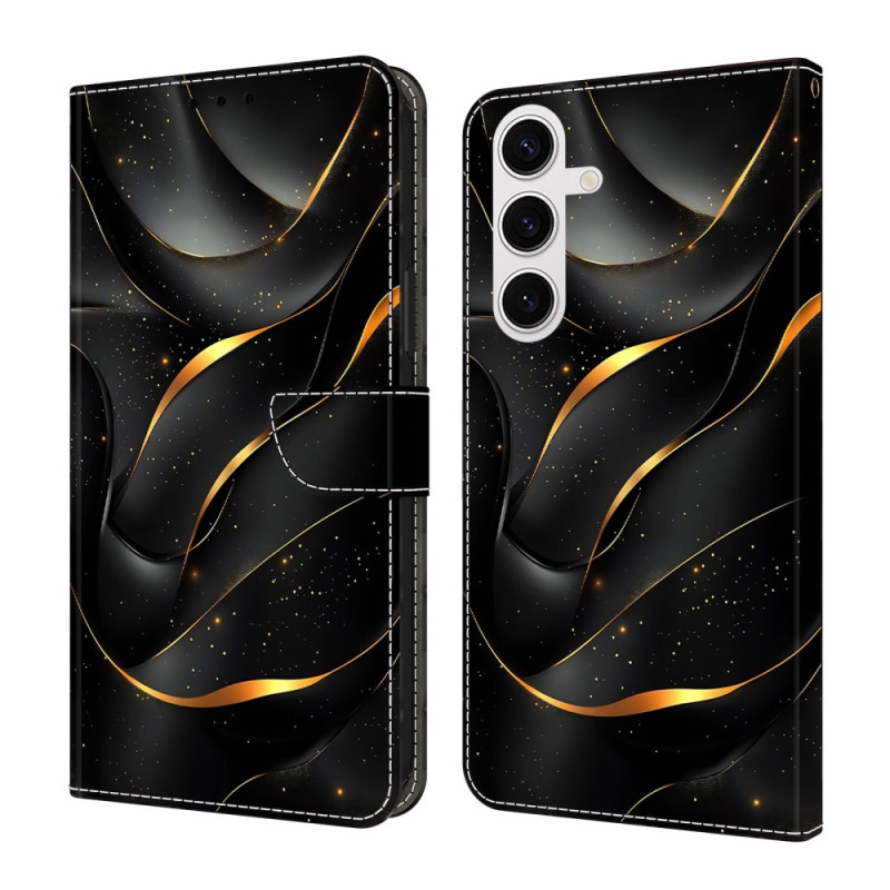 Découvrez l'élégance et la fonctionnalité réunies dans cet étui portefeuille sophistiqué pour Galaxy S26 Plus. Son design raffiné au motif ruban doré allie style et praticité avec support pliable intégré, porte-cartes et fermeture magnétique sécurisée.