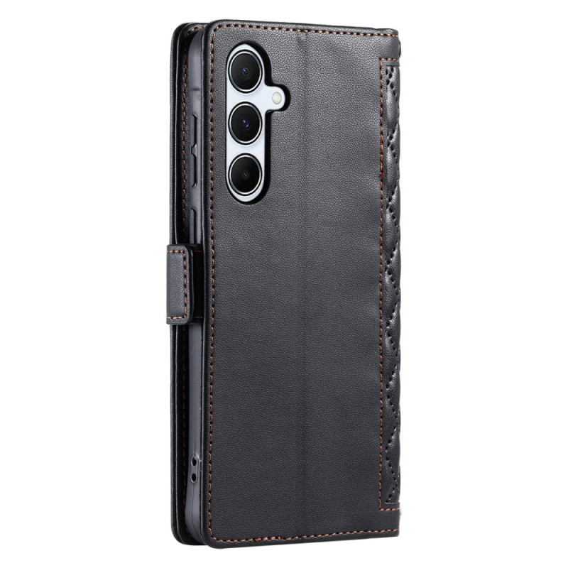 Étui portefeuille élégant avec texture losange pour Samsung Galaxy S26 Plus 5G. Doté de 3 emplacements pour cartes, 1 poche pour espèces et une dragonne pratique. Fonction support mains libres intégrée pour un visionnage confortable.