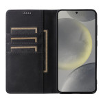 Étui portefeuille en cuir PU pour Samsung Galaxy S26 Plus avec technologie de blocage RFID. Doté de 3 emplacements pour cartes, d'une poche pour espèces et d'une fermeture magnétique automatique. Protection intégrale avec rebords surélevés pour l'appareil photo.
