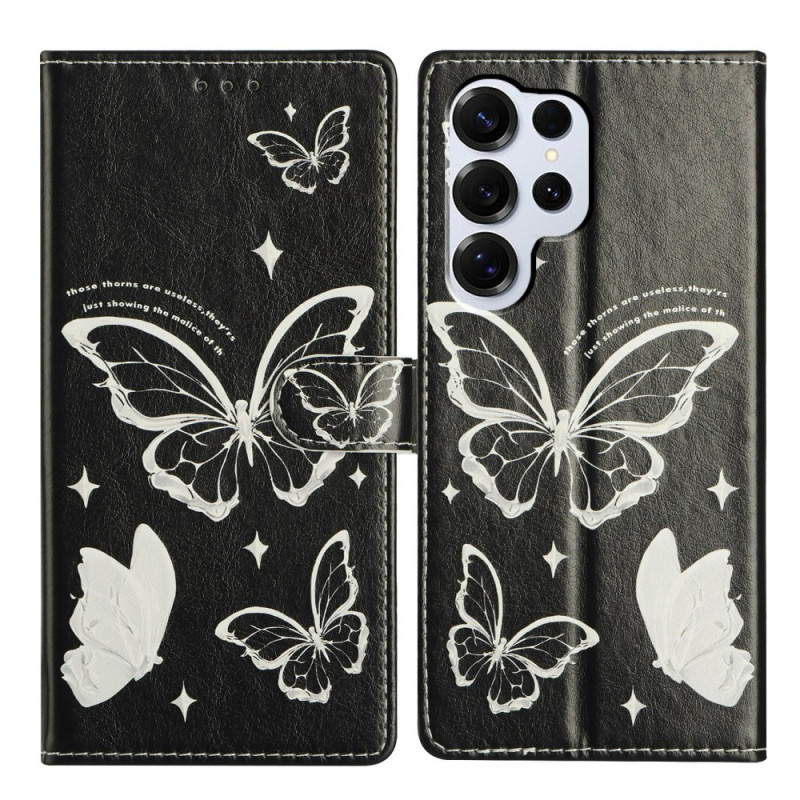 Élégant étui portefeuille à rabat avec un magnifique motif papillon. Intègre 2 emplacements pour cartes, 1 pochette photo et un compartiment spacieux. Fonction support mains libres intégrée pour regarder vos vidéos confortablement.