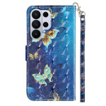 Protégez votre Samsung Galaxy S26 Ultra avec élégance grâce à cet étui portefeuille au design 3D de papillons bleu et or. Doté de fentes pour cartes, d'une fonction support ajustable et d'une dragonne pratique, il allie style et fonctionnalité.