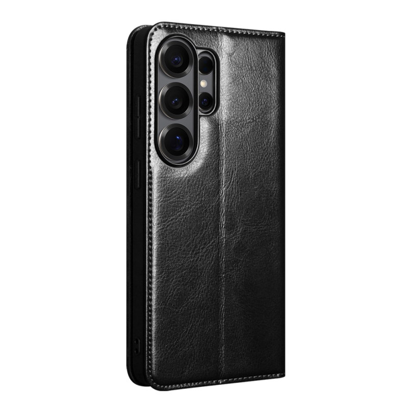 Étui portefeuille élégant pour Samsung Galaxy S26 Ultra en cuir véritable. Doté de multiples emplacements pour cartes, d'un support réglable et d'une protection intégrale contre les chocs et les chutes. Alliez style et fonctionnalité.