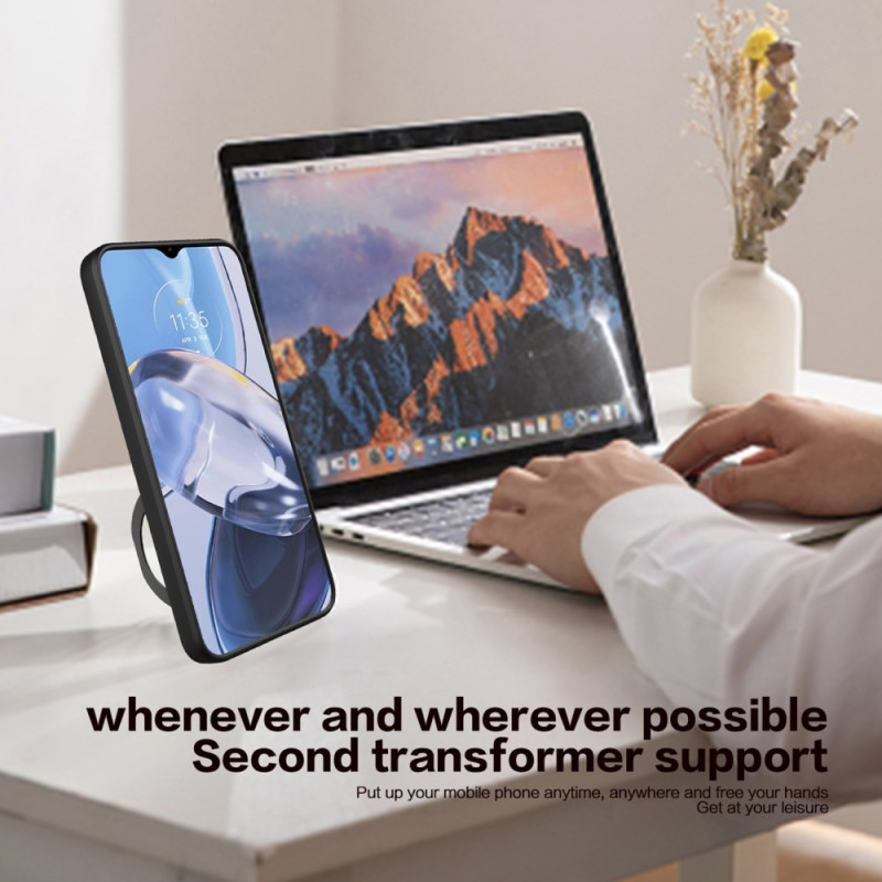 • Béquille Rotative 360 Degrés : Anneau ajustable offrant plusieurs angles de vision pour une utilisation mains libres idéale lors de la navigation, du visionnage de vidéos ou des appels vidéo.