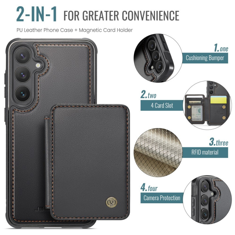 Étui en cuir 2-en-1 avec porte-cartes magnétique détachable pour Samsung Galaxy S26. Protection RFID intégrée, fonction support et compatibilité avec accessoires magnétiques. Design polyvalent offrant sécurité et praticité au quotidien.