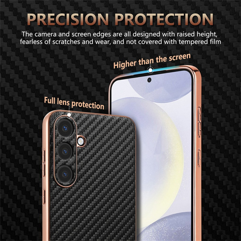 Protégez votre Samsung Galaxy S26 5G avec élégance grâce à cette coque sophistiquée à texture fibre de carbone. Fabriquée en TPU et cuir PU premium, elle offre une protection optimale tout en conservant un profil ultra-fin et léger.