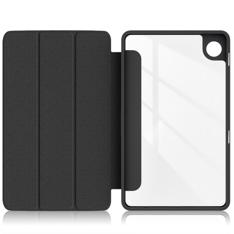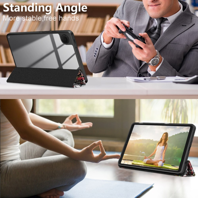 Ce couvercle tri-fold offre un support robuste et polyvalent pour la visualisation et la frappe.