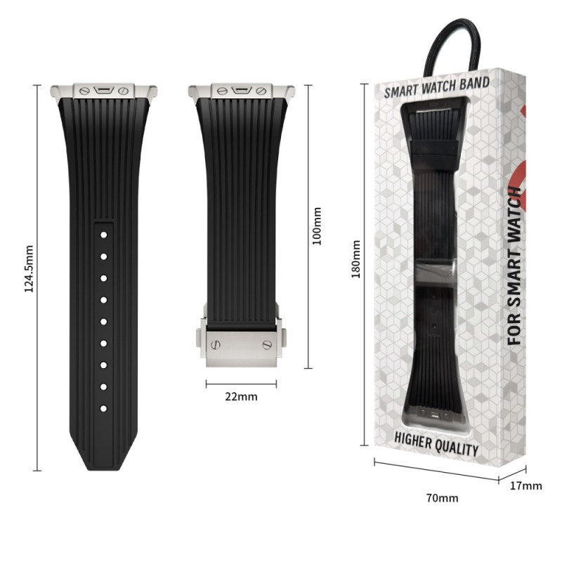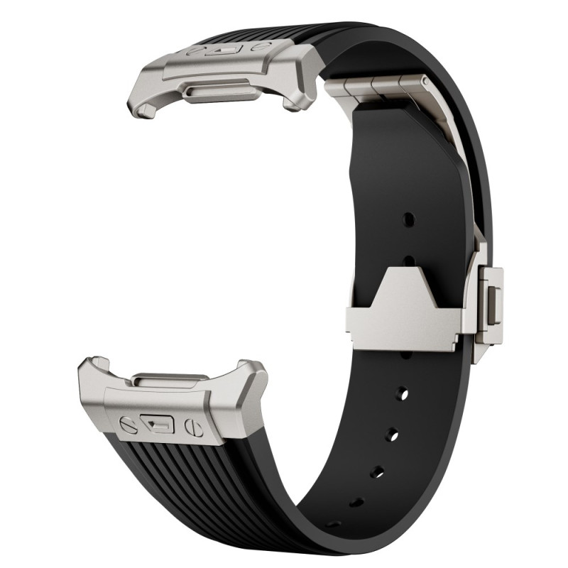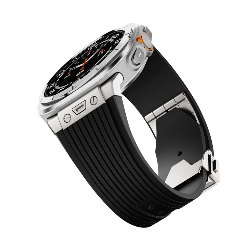 Découvrez notre bracelet en silicone pour Samsung Galaxy Watch Ultra 47mm. Doux, flexible et confortable, il est doté d'une boucle pliante argentée pour une fermeture sûre et facile.