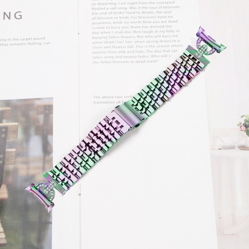 1. Design élégant en forme de D avec accents de strass : Ce bracelet ajoute une touche de sophistication et de luxe à votre montre intelligente