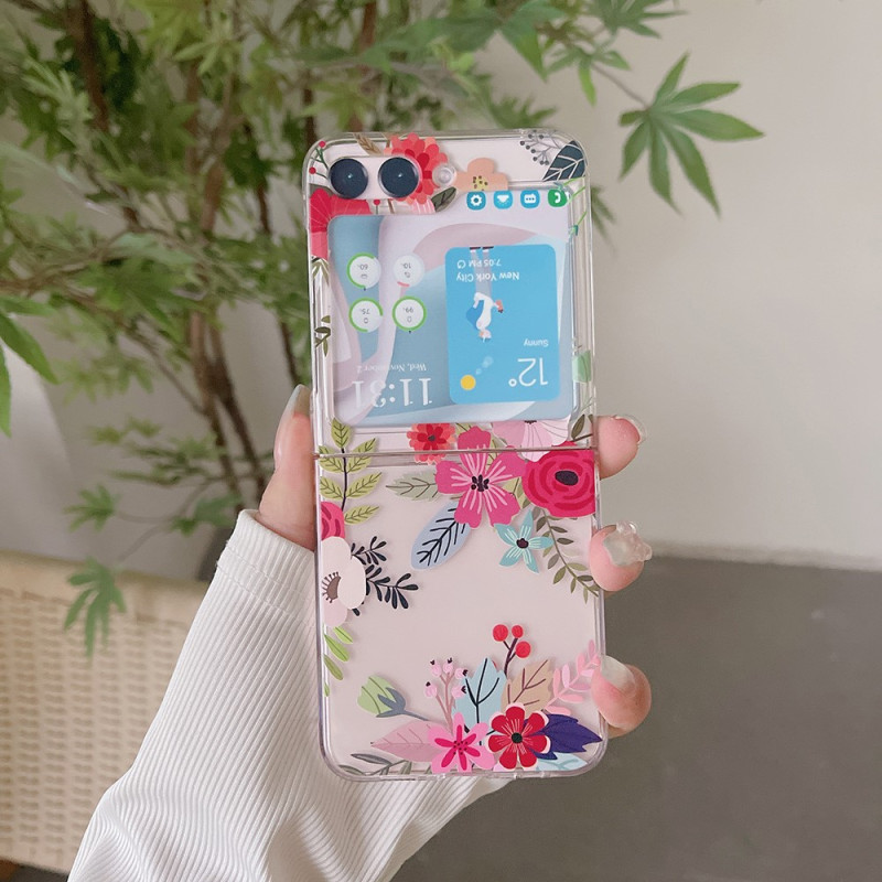 Votre Samsung Galaxy Z Flip 5 est joliment protégé et décoré grâce à cette coque transparente ornée de fleurs.