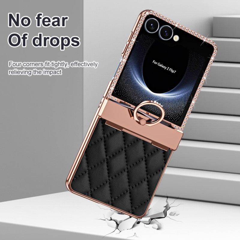 Découvrez notre étui élégant pour Samsung Galaxy Z Flip 7 5G. Alliant cuir texturé et PC, il offre une protection supérieure avec un design rhombique sophistiqué.
