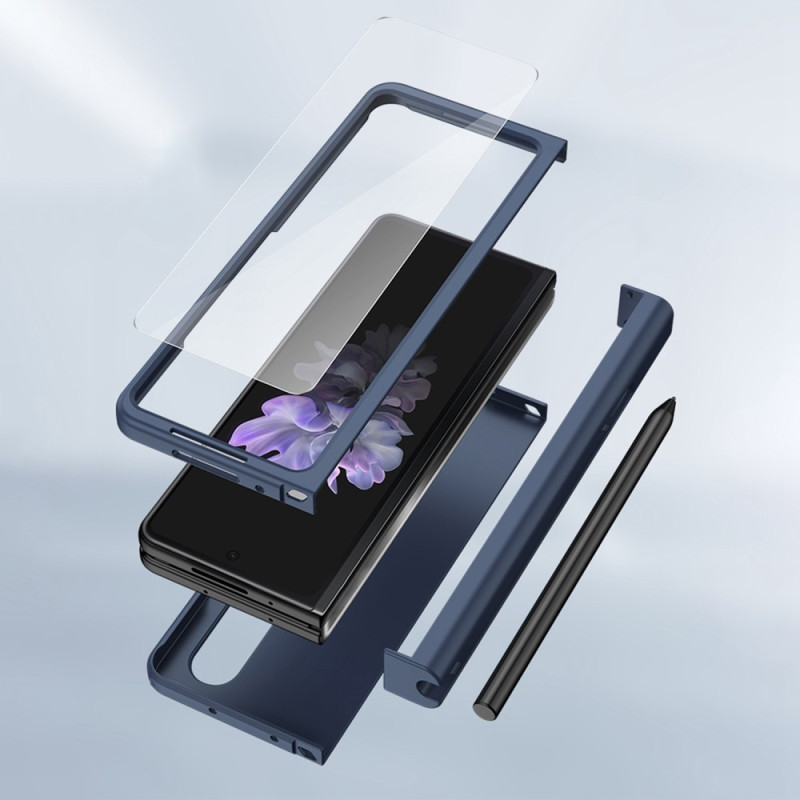 L'ensemble du téléphone est protégé par la plastique, un écran de verre trempé et une charnière amovible.