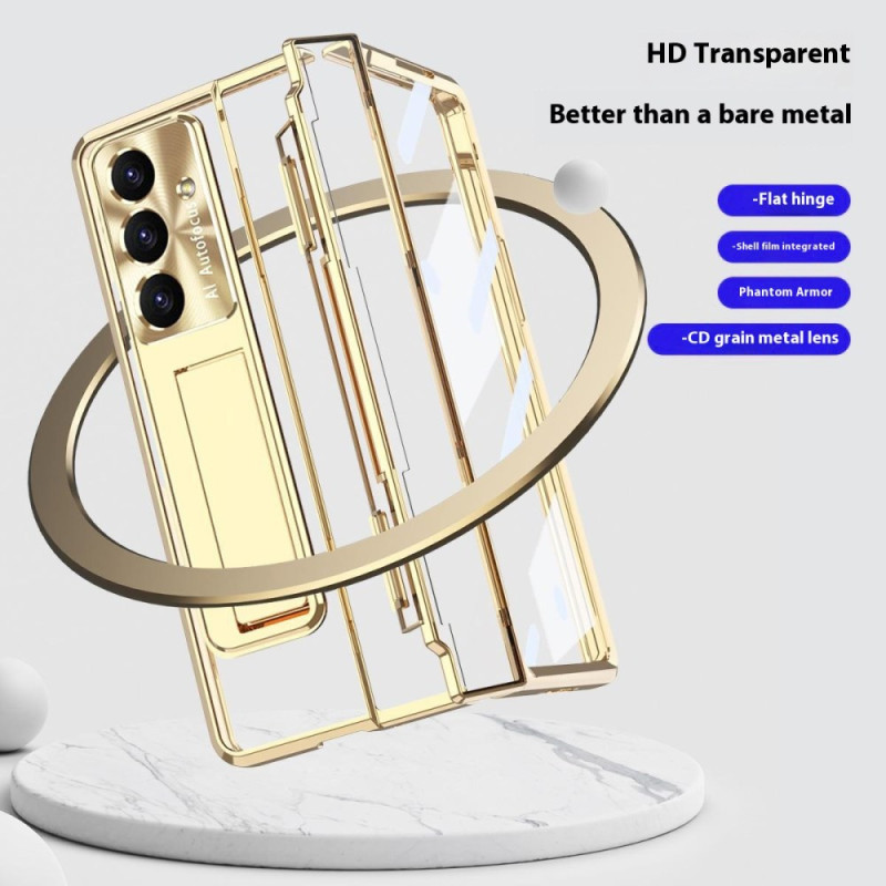 Découvrez notre coque de protection premium pour Samsung Galaxy Z Fold 7 5G. Fabriquée en PC dur transparent, elle offre une protection complète avec un film d'écran intégré, un support pratique et un porte-stylet.