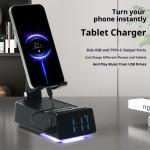 La convergence experte de l'éclairage, de la gestion du temps et du divertissement sonore définit ce dispositif multifonctionnel. Cette station 4-en-1 intègre une enceinte Bluetooth 5.1 pour un son riche à 360° et une horloge numérique avec double alarme. Son support est ajustable sur 180 degrés, permettant un visionnage ergonomique en modes portrait et paysage. L'éclairage ambiant propose sept modes dynamiques (gradient, respiration, couleurs fixes), créant une atmosphère relaxante. La batterie intégrée de 2000mAh assure jusqu'à 4 heures de lecture continue sans fil.