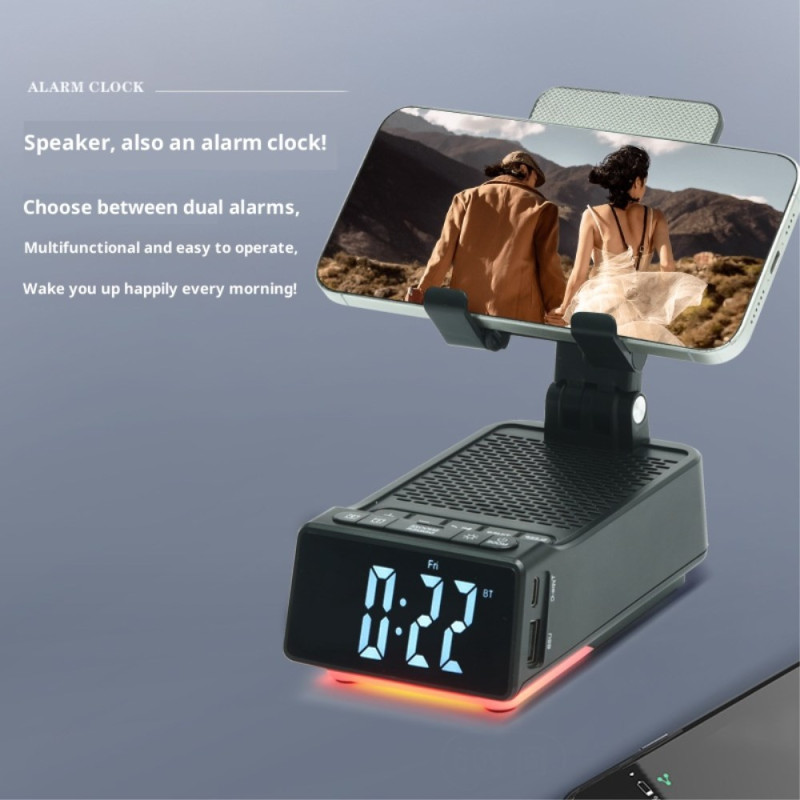 - Fonctionnalité 4-en-1 (enceinte, lampe, horloge, support) : solution intégrée pour le bureau et la table de chevet.