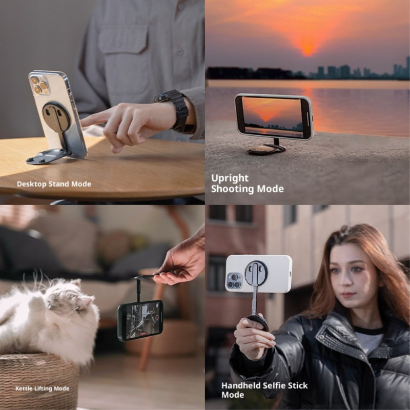 La flexibilité d'un accessoire capable de passer instantanément du mode selfie au mode support de bureau est l'atout de ce Support Magnétique MagFlex PGYTECH. Sa construction en alliage premium assure une structure légère, durable et stable. Le système magnétique puissant garantit une fixation sécurisée et sans effort sur les dispositifs MagSafe. L'accessoire est conçu pour une conversion multifonctionnelle rapide (prise en main, support de table, angle bas). Sa poignée ergonomique réduit la fatigue lors d'utilisations prolongées. Ce support est l'outil indispensable aux créateurs de contenu et aux professionnels en visioconférence.