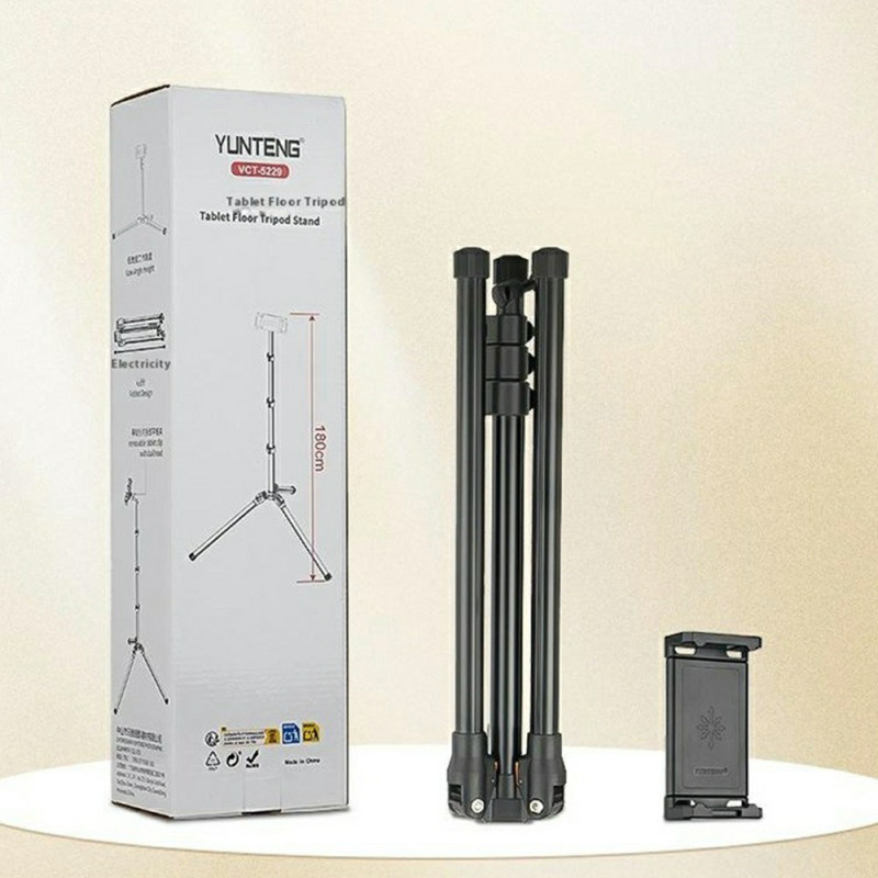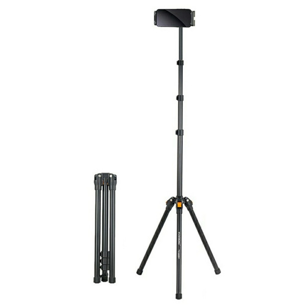L'élévation de votre appareil à une hauteur professionnelle est désormais possible grâce à la structure robuste en alliage d'aluminium de ce trépied. Ce trépied YUNTENG VCT-5229 offre une hauteur ajustable de 77cm à 180cm, idéale pour le streaming en direct ou les conférences debout. La tête pivotante à 360 degrés permet un cadrage parfait en mode portrait ou paysage. Léger (562g) et compact (43cm une fois plié), il est conçu pour la mobilité. Sa pince universelle accueille solidement la majorité des smartphones et tablettes (jusqu'à 23cm de largeur).