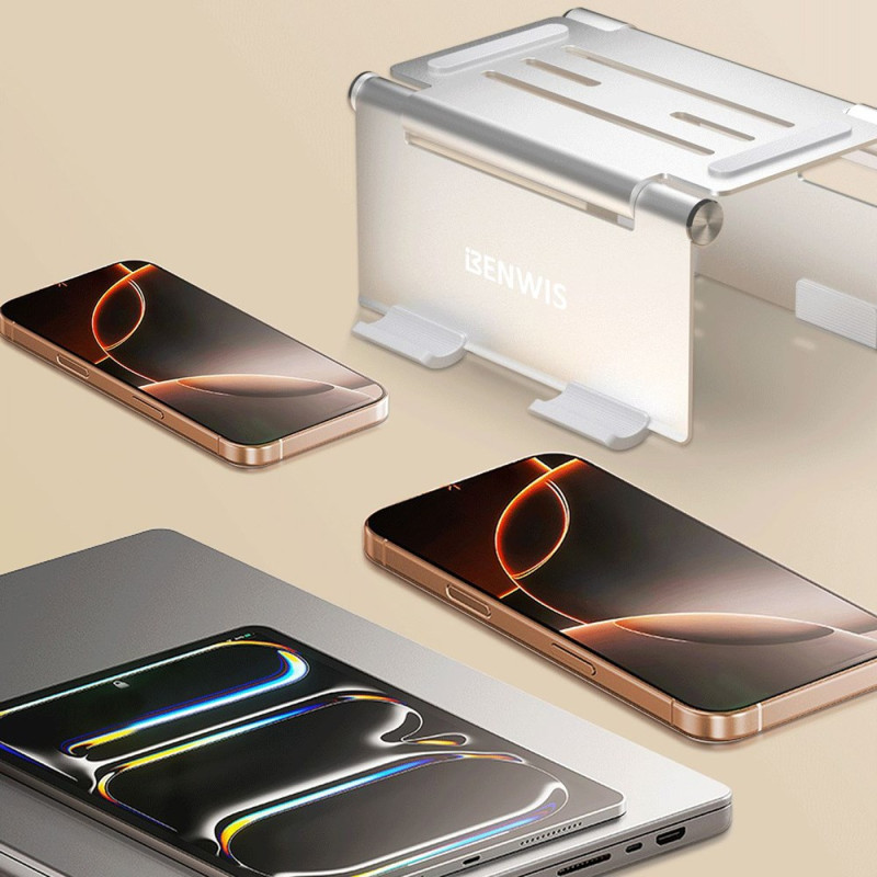 L'excellence du design se manifeste par la capacité d'un accessoire à remplir plusieurs rôles sans compromettre son esthétique minimaliste. Entièrement usiné CNC dans un alliage d'aluminium, ce support BENWIS offre une solution 3-en-1 pour PC portable, tablette et rangement vertical. Son profil est ultra-portable, ne mesurant que 16mm une fois plié. Le déploiement est instantané (une seconde), facilitant l'installation rapide. Des patins en silicone assurent une stabilité absolue. Il est idéal pour organiser l'espace de bureau en utilisant la fonction de stockage vertical pour disques durs ou tablettes.