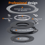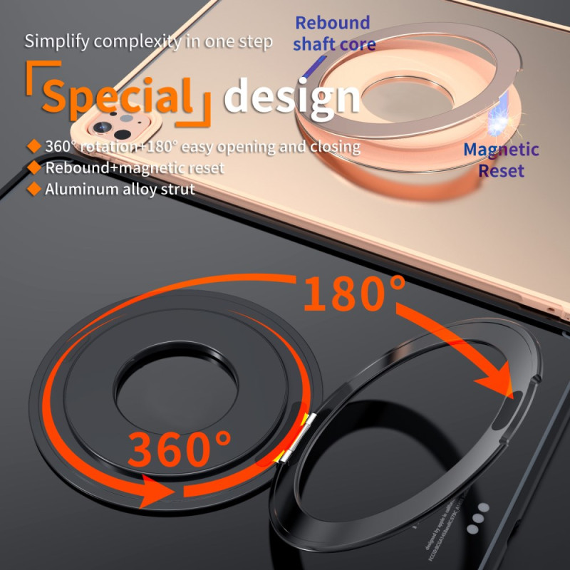 Le support rotatif 360° adhésif pour téléphone et tablette combine élégance et ingénierie pour un confort d’utilisation optimal. Son anneau pivotant à 360° et inclinable à 180° offre une liberté totale d’angle pour la visualisation horizontale ou verticale. Conçu en alliage d’aluminium de qualité iPad, il allie légèreté, solidité et finition haut de gamme. Grâce à son puissant aimant intégré, il se fixe facilement sur tout support magnétique. Son mécanisme à ressort magnétique permet une ouverture fluide et un repli parfait à plat, garantissant une utilisation stable, sûre et sans encombrement.