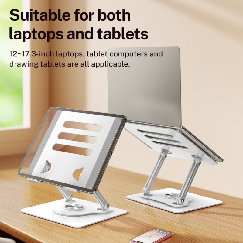 Ce support pour ordinateur portable et tablette allie robustesse et confort d’utilisation grâce à sa conception en acier carbone et son système rotatif à 360°. Compatible avec les appareils de 12 à 17,3 pouces, il permet d’ajuster la hauteur et l’angle de vision pour un poste de travail ergonomique et personnalisable. Son design ajouré favorise la circulation de l’air pour un refroidissement optimal, même lors d’une utilisation prolongée. Pliable et facilement transportable, il s’intègre parfaitement à tout environnement de bureau ou domestique pour un confort durable au quotidien.