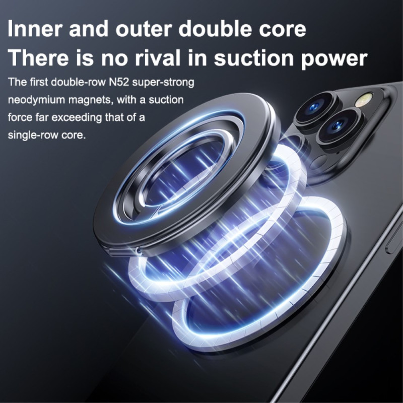Découvrez le support téléphone magnétique ultime compatible MagSafe. Rotation 360° fluide, fonction 2 en 1 anneau et support, ajustement multi-angles pour une utilisation optimale en mode portrait ou paysage. Design pliable et compact.