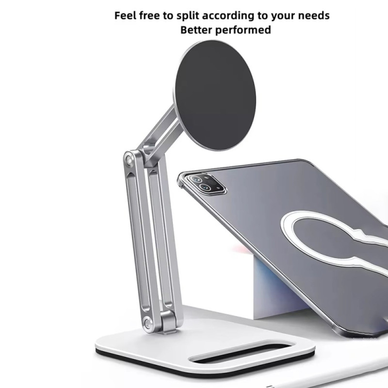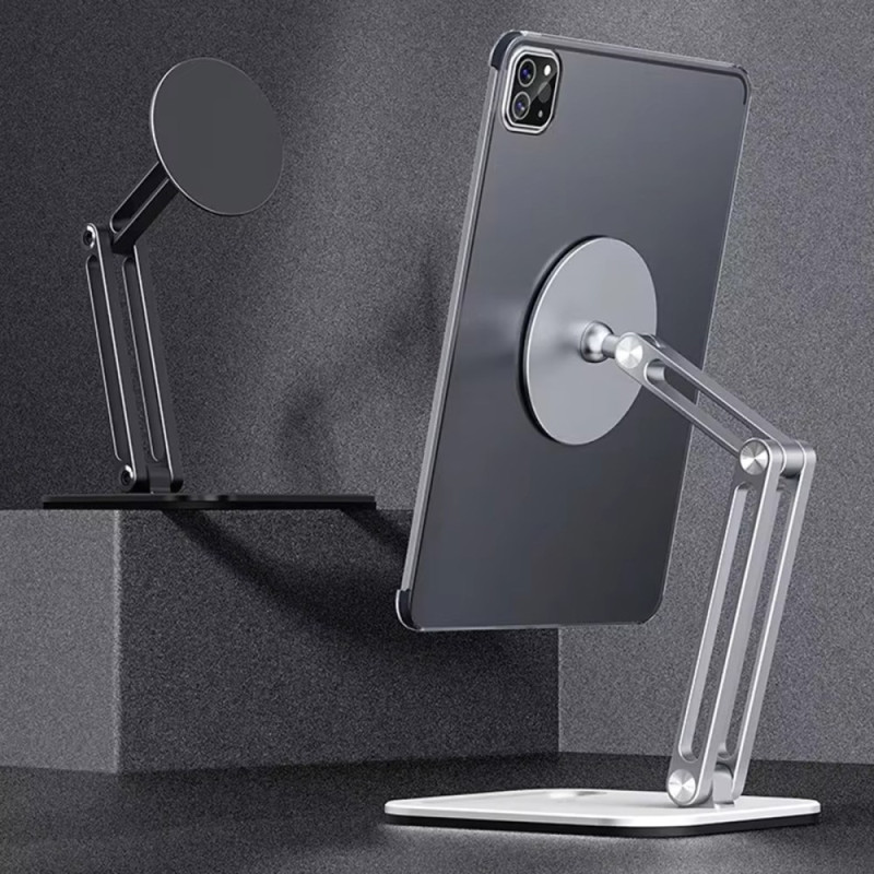 Le support magnétique pour tablette Boneruy C47 offre une combinaison parfaite de robustesse, d’élégance et de confort d’usage. Conçu en alliage d’aluminium haut de gamme, il assure une stabilité remarquable pour les smartphones et tablettes de 5 à 12,9 pouces. Grâce à ses deux bras articulés, il permet d’ajuster facilement la hauteur et l’angle de vision pour travailler, dessiner ou regarder des vidéos dans une posture ergonomique. Son système magnétique précis et puissant garantit un maintien sûr, sans vibrations. Pliable et compact, il s’emporte aisément et se range discrètement lorsqu’il n’est pas utilisé.