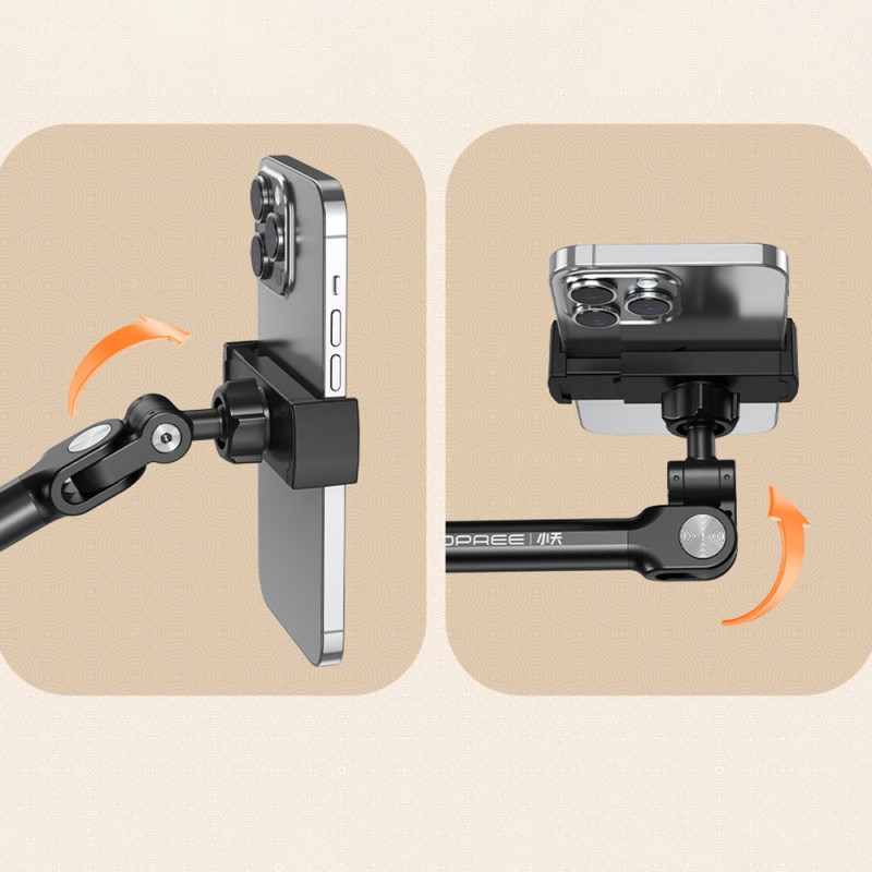 Le support de sol réglable Boneruy est conçu pour offrir une hauteur optimale et une grande liberté de prise de vue. Grâce à sa perche télescopique extensible jusqu’à environ 160 cm, il permet de filmer, photographier ou réaliser des lives sous l’angle parfait. Sa rotule multi-dimensionnelle à 360° offre une flexibilité totale pour les plans en hauteur, les vidéos de démonstration ou les sessions de streaming. Fabriqué en acier carbone avec une base robuste en PC, il assure une excellente stabilité. Compatible avec la majorité des smartphones de 6 à 9 cm de large, il convient aussi bien aux créateurs de contenu qu’aux usages quotidiens.