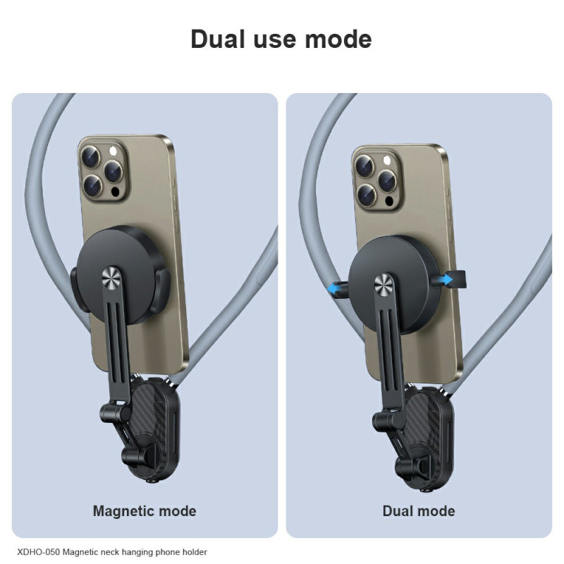Le support de téléphone magnétique pour cou XUNDD XDHO-050 offre un confort exceptionnel pour filmer, suivre un tutoriel ou utiliser votre smartphone sans les mains. Sa puissante adsorption magnétique maintient le téléphone parfaitement stable, même en mouvement. Son design ergonomique avec silicone élargi répartit le poids sur l’ensemble du cou, réduisant la pression et la fatigue cervicale. La fonction anti-shake intégrée limite les vibrations pour des prises plus nettes. Grâce à son double mode — normal et magnétique — il s’adapte à tous les usages, que ce soit pour le vlog, le sport ou la consultation mains libres.