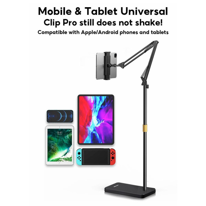Profitez d'un confort optimal avec ce support de sol télescopique réglable en hauteur jusqu'à 1.6m. Son bras flexible et sa rotation à 360° permettent un positionnement parfait de votre appareil. Construction robuste en acier et ABS pour une stabilité maximale.