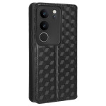 Protégez votre Vivo V29 5G avec élégance grâce à cet étui portefeuille en cuir PU au design losange raffiné. Doté de 2 emplacements pour cartes et d'un support mains libres ajustable, il allie style et praticité. Sa fermeture magnétique assure une sécurité optimale.