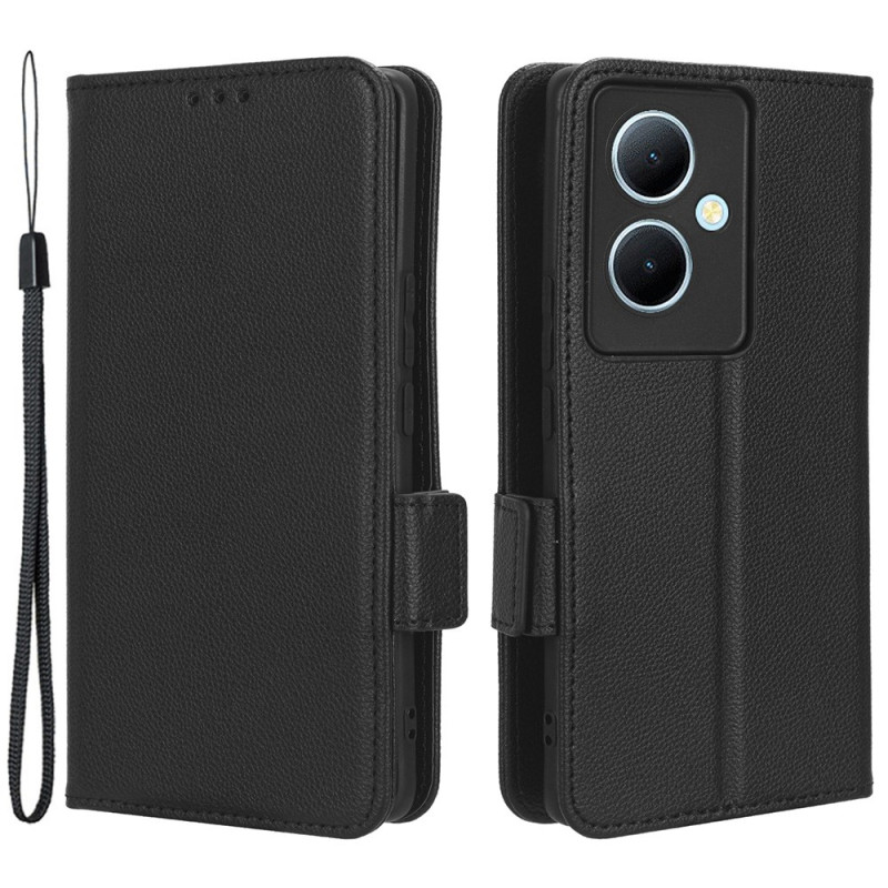 Étui portefeuille élégant en cuir PU texturé pour votre smartphone vivo. Doté d'un fermoir magnétique sécurisé, de multiples compartiments pour cartes et espèces, et d'une fonction support mains libres. Protection intégrale contre les chocs quotidiens avec dragonne incluse.