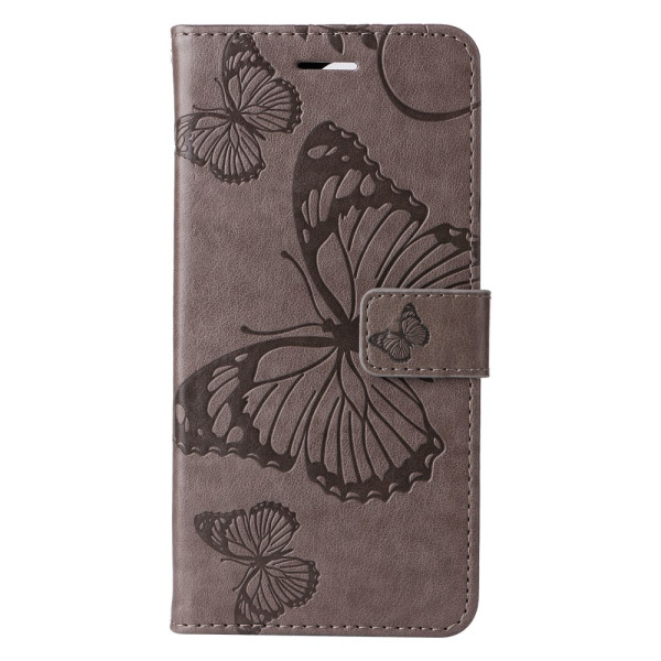 Élégant étui portefeuille en cuir synthétique avec motif papillon gravé. Deux emplacements pour cartes, compartiment latéral et fonction support intégrée. Livré avec dragonne pratique pour un transport sécurisé au quotidien.