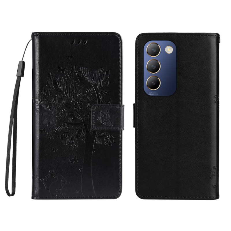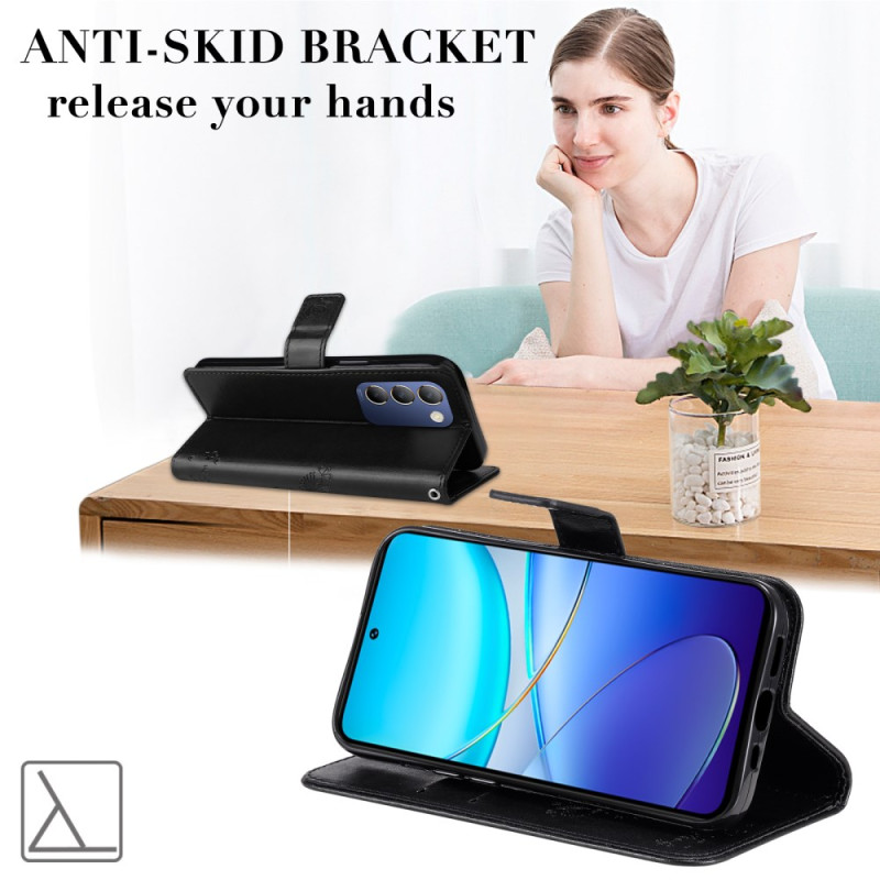 Protégez votre Vivo V40 SE 5G avec élégance grâce à cet étui portefeuille multifonction. Doté de compartiments pour cartes et espèces, d'un support intégré et d'un motif raffiné avec chat et arbre, il allie style et praticité au quotidien.