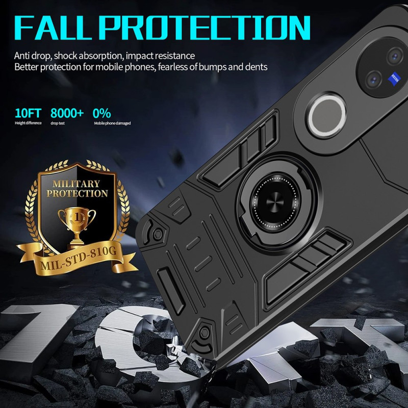 Protégez votre Vivo V50 5G avec cette coque robuste à double couche. Son anneau support rotatif à 360° vous offre un confort de visionnage optimal. Compatible avec les supports magnétiques de voiture pour une navigation pratique.