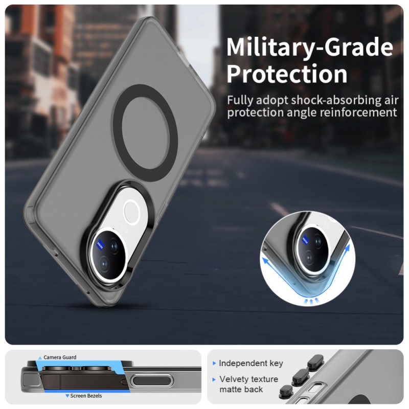 Protégez votre Vivo V50 5G avec cette coque hybride premium compatible MagSafe. Conception anti-choc avec matériaux de qualité supérieure, rebords surélevés pour protéger l'écran et la caméra, et charge sans fil magnétique optimale. Design slim et élégant.