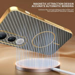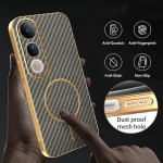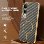 Protection élégante et robuste pour votre Vivo V50 Lite. Conception en TPU flexible avec finition électrodéposée premium et texture fibre de carbone anti-traces. Bords surélevés pour protéger l'écran et la caméra, découpes précises et compatibilité avec chargeur magnétique.