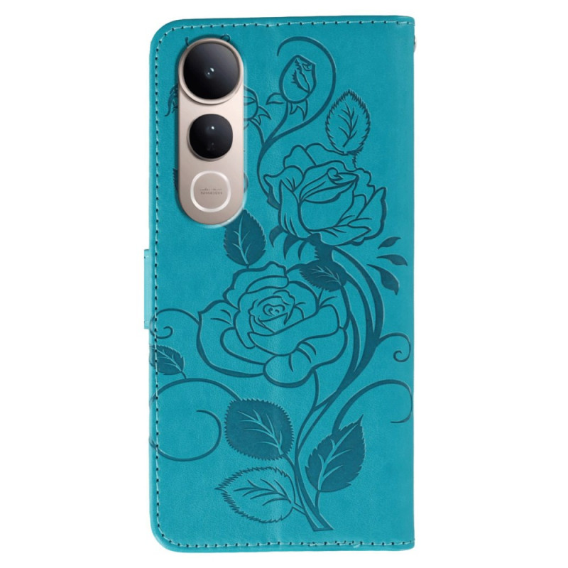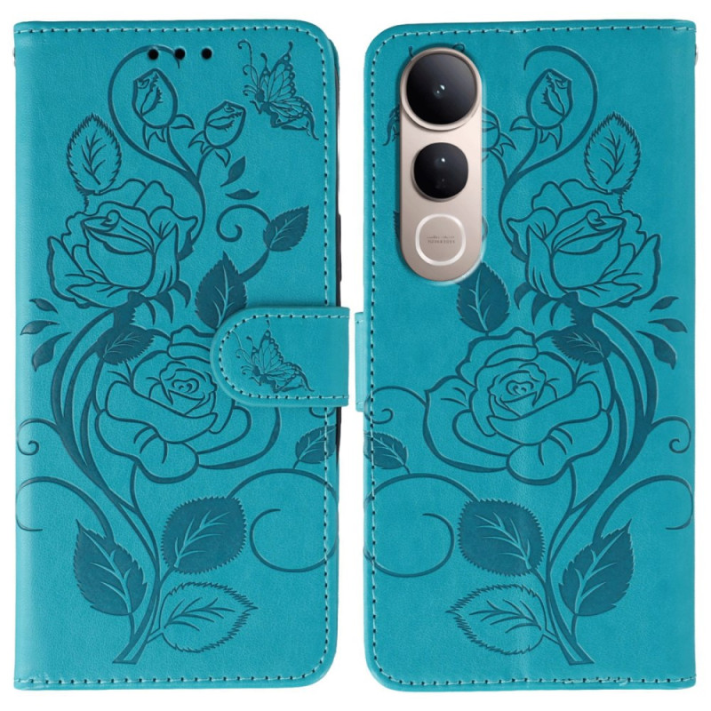 Étui portefeuille élégant en cuir PU pour Vivo V50 Lite 4G/5G avec motif papillons et roses imprimé. Doté de 3 emplacements pour cartes, d'un compartiment latéral et d'une fonction support pour une expérience mains libres optimale.