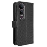 Étui portefeuille élégant avec texture diamant raffinée pour Vivo V50 Lite. Doté de compartiments pour cartes, poche cash, support pliable et fermeture magnétique sécurisée. Protection intégrale contre les chocs et rayures au quotidien.